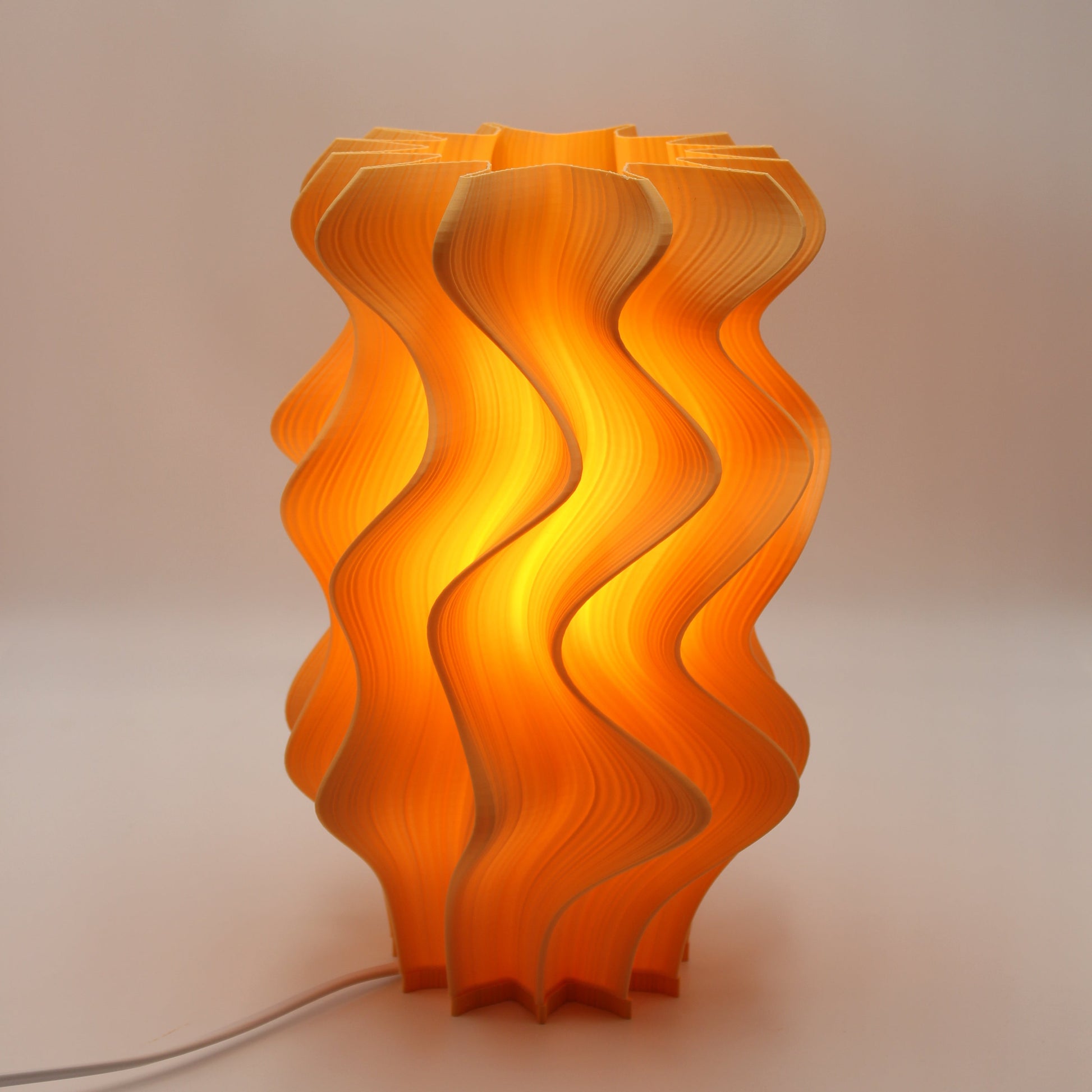 This Apricot Iris is from a fragment print where the printer ran out of material before completion. The lamp has been finished and assembled in the studio and remains fully functional, with the visible fragment line becoming part of the piece.